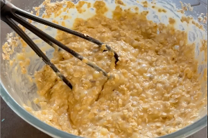Incorporez les flocons d’avoine et les pépites de chocolat.