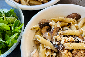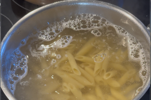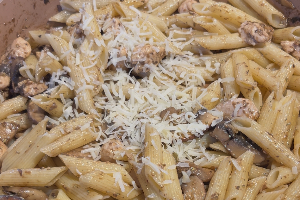 Ajoutez les penne et la moitié du parmesan. Mélangez bien.