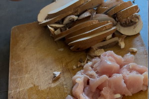 Nettoyez les champignons avec un essuie-tout humide, puis coupez-les en fines tranches.