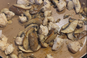 Ajoutez les poulet et l'ail, puis faites cuire 5 min, jusqu'à ce que le poulet soit cuite à coeur.