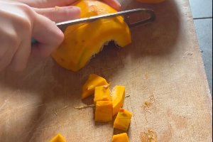 Epluchez le potimarron, évidez-le et coupez le en dés.