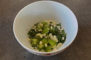 Ciselez la menthe, le persil et l'ail.